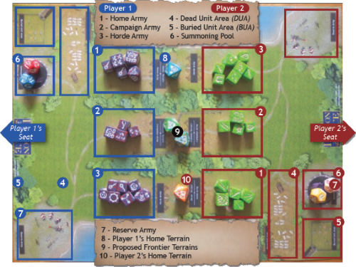 Buried Unit Area (BUA) (5) | Dead units may be buried. Buried units are removed from the Dead Unit Area (DUA) and must be placed in this area. Buried units are out of play and cannot be returned to an army by any means. |